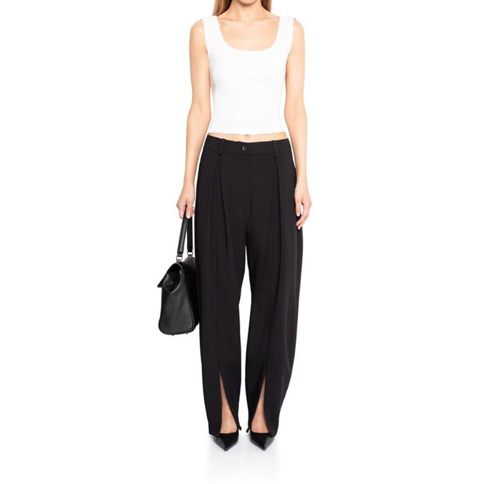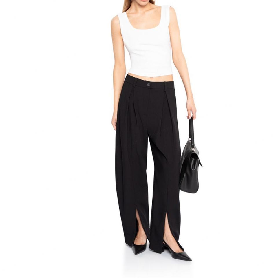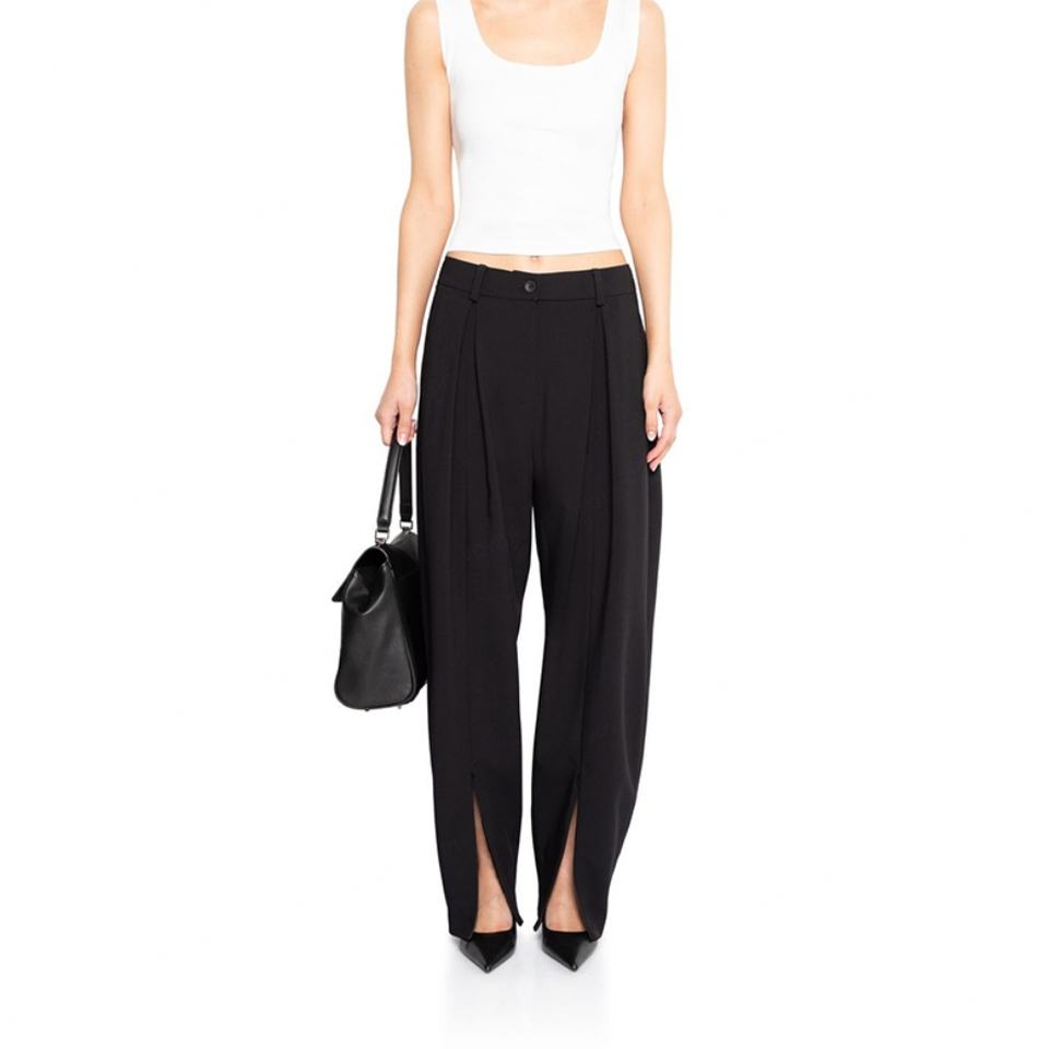 กางเกงสูทพลีทผู้หญิงแฟชั่นใหม่ยอดนิยม ซิปเปิดข้าง เอวสูง ผ้าฝ้าย กางเกงทำงาน