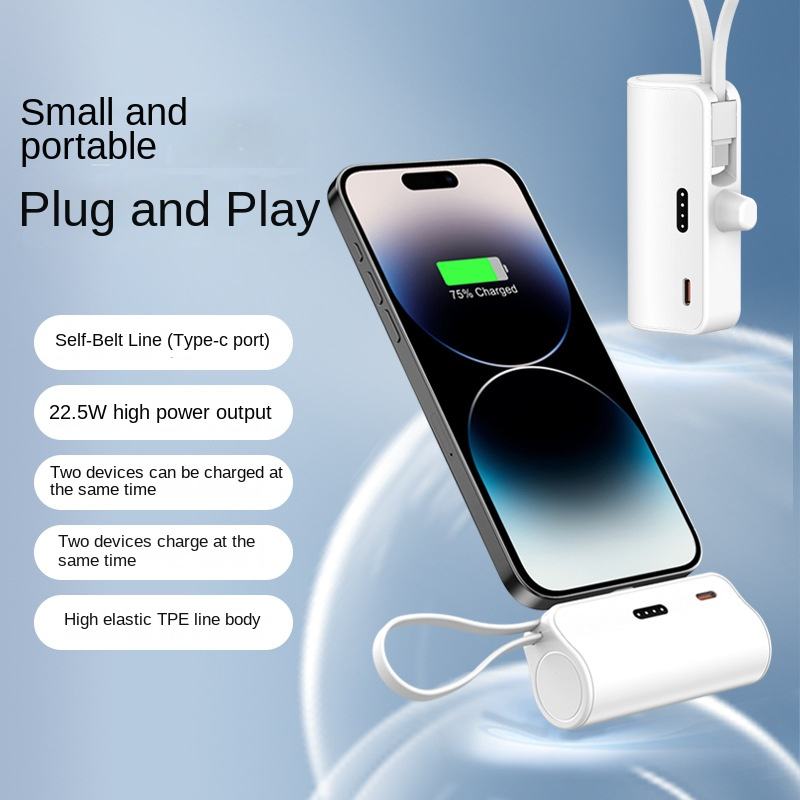 พาวเวอร์แบงค์พกพา5000 mA แบบพกพาใหม่พร้อมสายชาร์จเร็วปลั๊กหางสำหรับการค้าต่างประเทศโรงงานขายส่ง