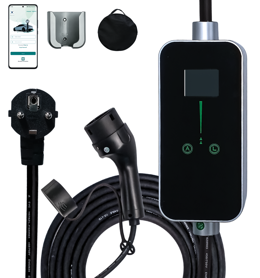 เครื่องชาร์จรถยนต์ไฟฟ้าแบบพกพาสำหรับติดตั้งในรถยนต์ 3.5 กิโลวัตต์ ชนิดที่ 2 กระแสสลับ 32 แอมป์ 100-110 โวลต์ ได้รับการรับรองมาตรฐานยุโรป รุ่น AC1628(E2)