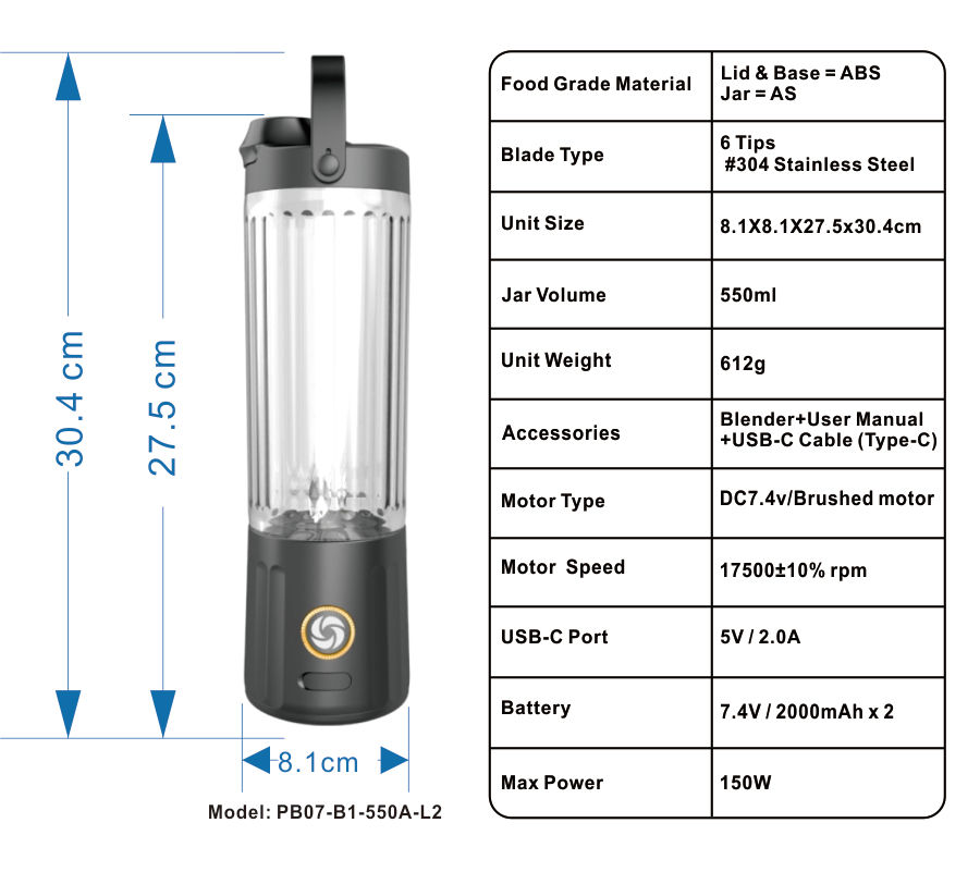 วัสดุ:BPA เกรดอาหารฟรี ABS