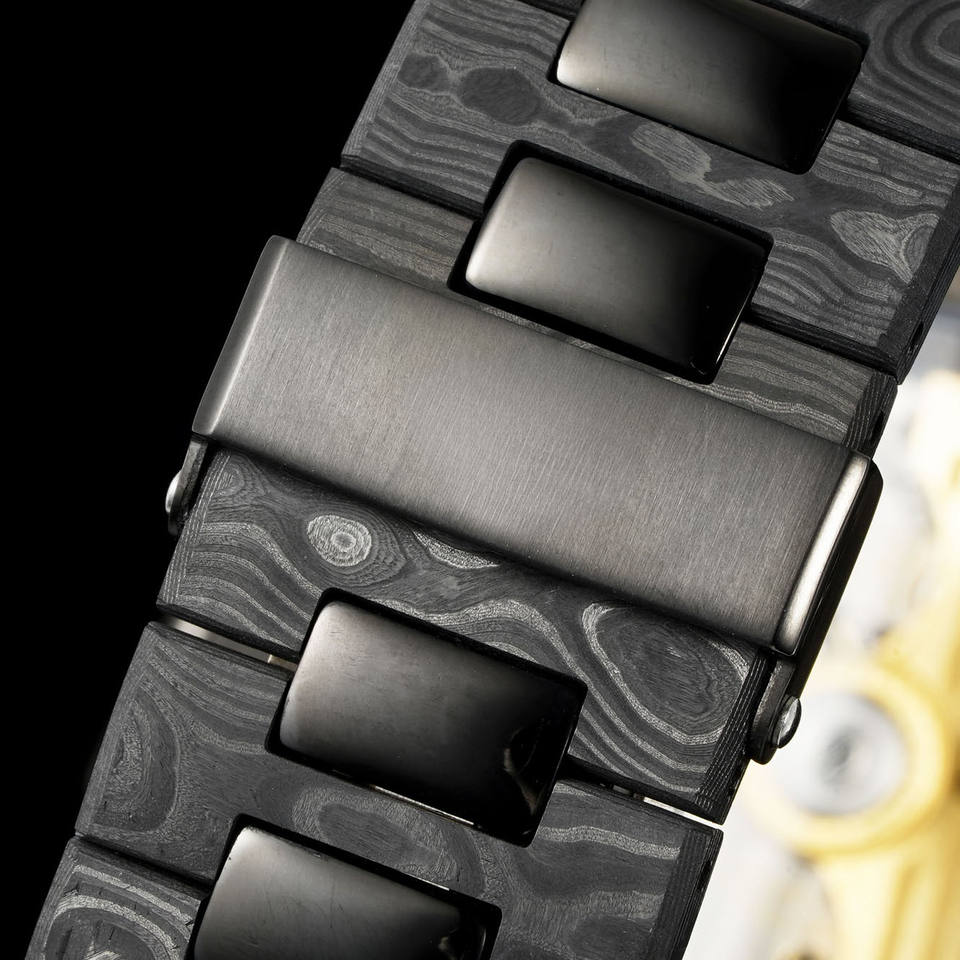 ใหม่พีพี ลักชัวรี สไตล์ลำลองสำหรับผู้ชายนาฬิกากลไกอัตโนมัติทรงแปดเหลี่ยมสีน้ำเงินเข้มทั้งหมดคาร์บอนไฟเบอร์แสดงวันที่นาฬิกาข้อมือ