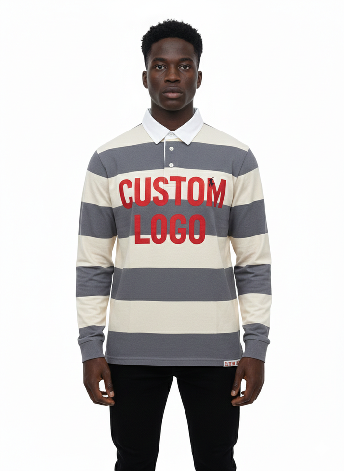 เสื้อโปโลผ้าฝ้ายพรีเมียมใหม่สำหรับผู้ชาย ปักโลโก้ตามสั่ง ลายทางสีเหลือง แขนยาว เสื้อโปโลแขนสั้นสำหรับผู้ชาย