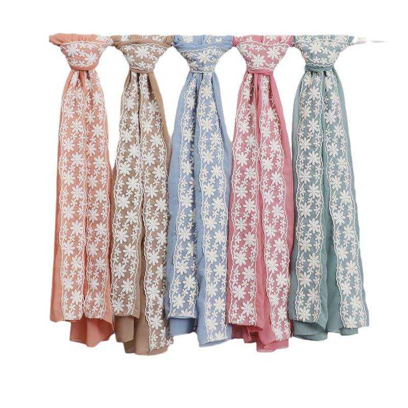 ผ้าพันคอลูกไม้แบบชนเผ่าของผู้หญิงแบบพรีเมียมผ้าคลุมไหล่ผ้าโพกหัวเนื้อนุ่มยาวสีทึบผ้าโพกศีรษะตามสั่งใหม่ฮิญาบมุสลิม