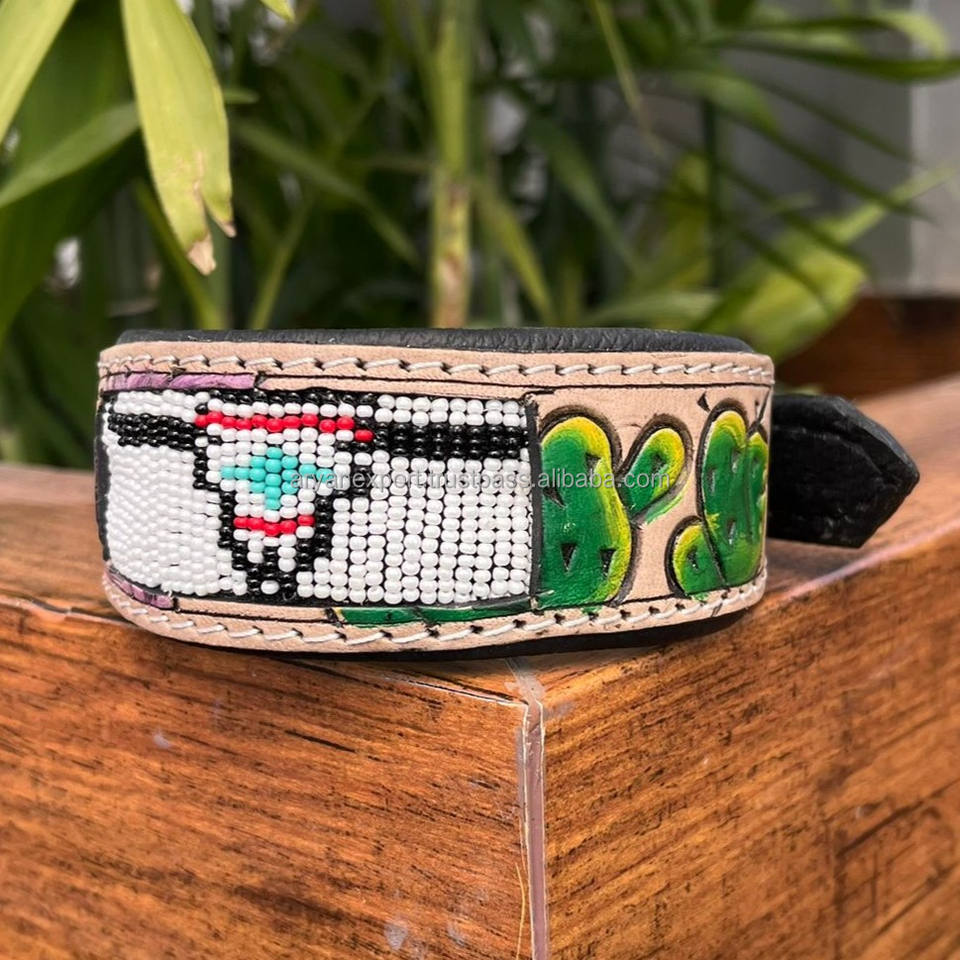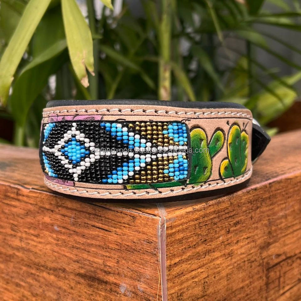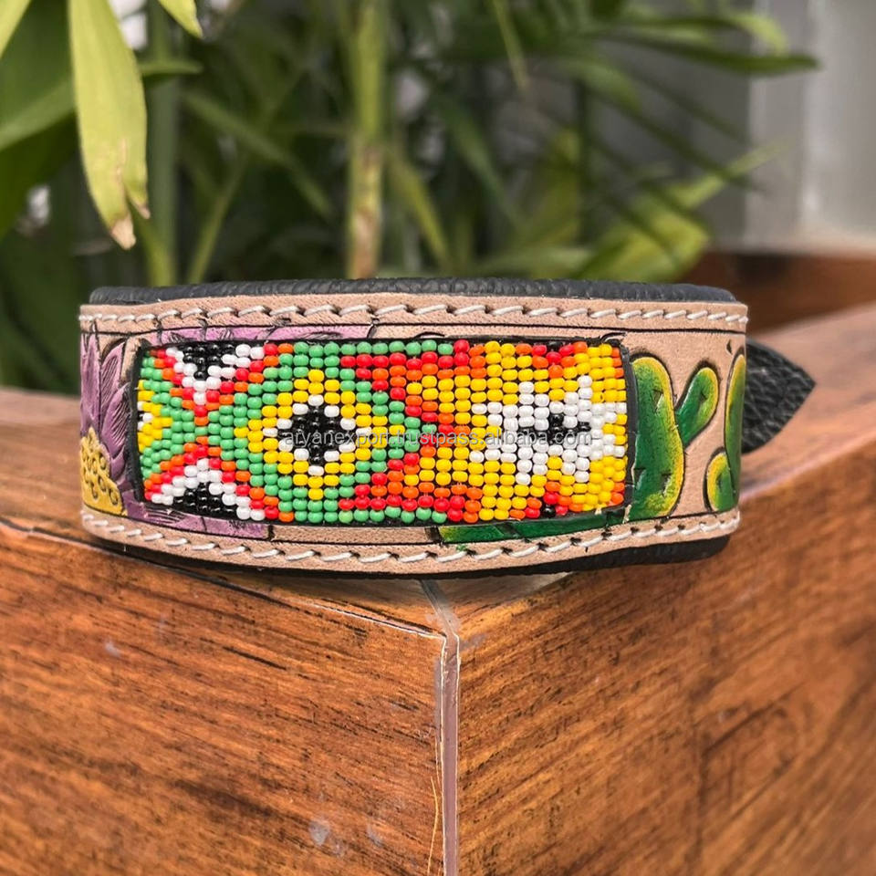 Product Name:Hand Tooled Leather Beaded Dog Collar