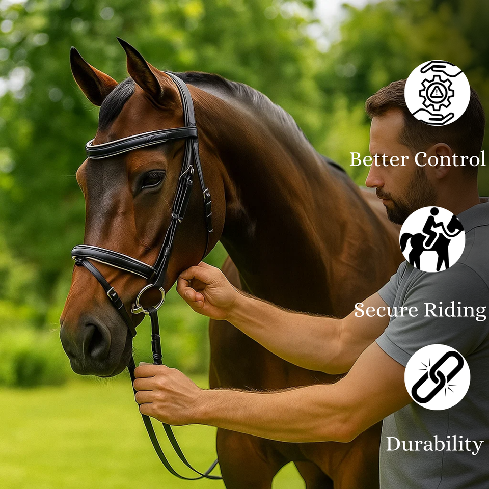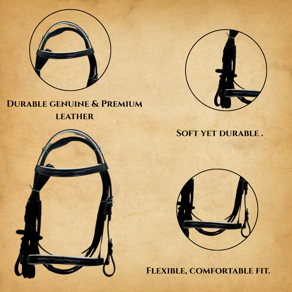 New Premium Horse Bridle Set | High Quality Genuine Leather | Black Equestrian Bridle | Racing & Sports Riding |Adjustable Reins