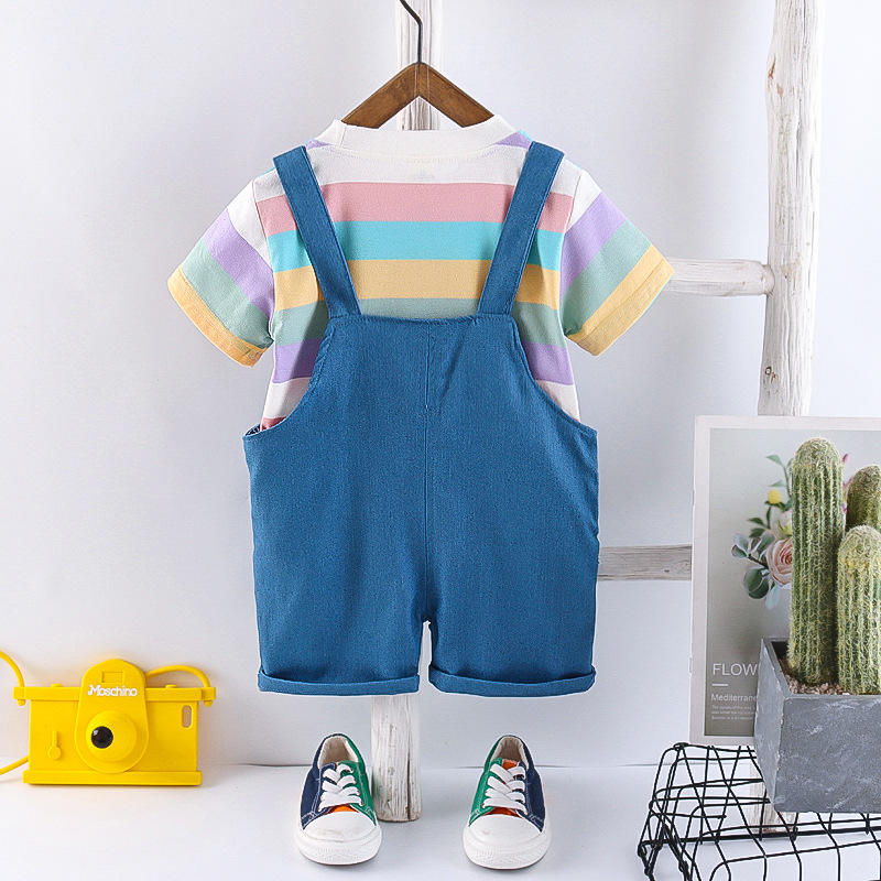 ชุดสูทผ้าฝ้ายลายทางดีไซน์สวยสำหรับเด็กผู้หญิง ใส่สบายรับหน้าร้อน