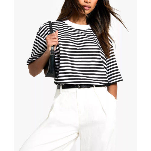 New Premium Quality Stripped Style T-Shirts for Women Best Price Customized Logo for Women T-Shirts