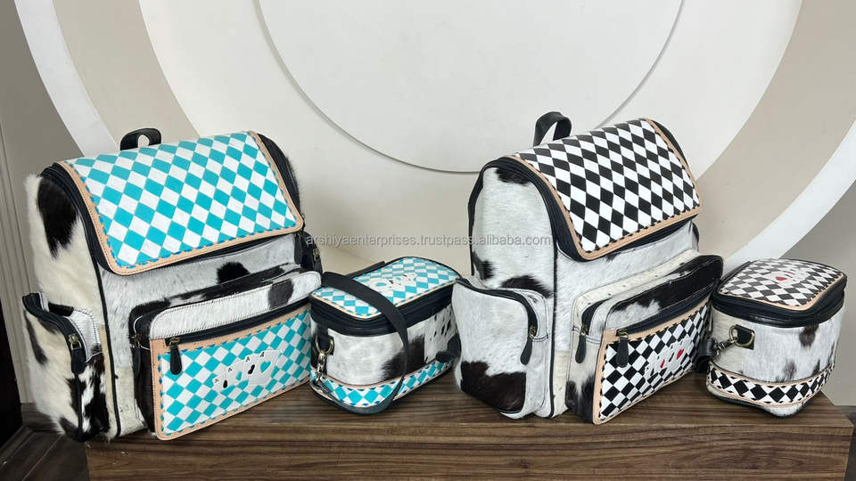Product name:Checkered Leather Backpack with Cosmetic Bag Set