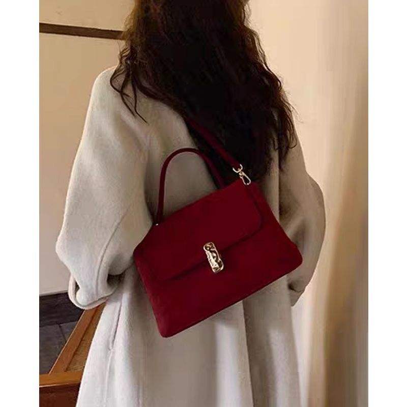 กระเป๋าถือเจ้าสาวอเนกประสงค์รุ่นพรีเมียมใหม่ กระเป๋าสะพายข้างขนาดใหญ่ กระเป๋าโท้ทสีแดงสำหรับงานแต่งงานสำหรับผู้หญิง