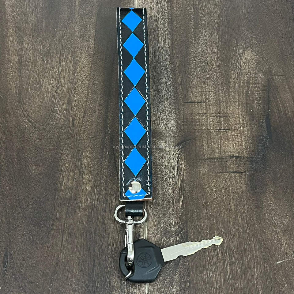 พวงกุญแจหนังวัวลายตารางวินเทจพรีเมียมแบบใหม่ ปรับแต่งได้ ทันสมัย ทนทาน พร้อมสายคล้องข้อมือ