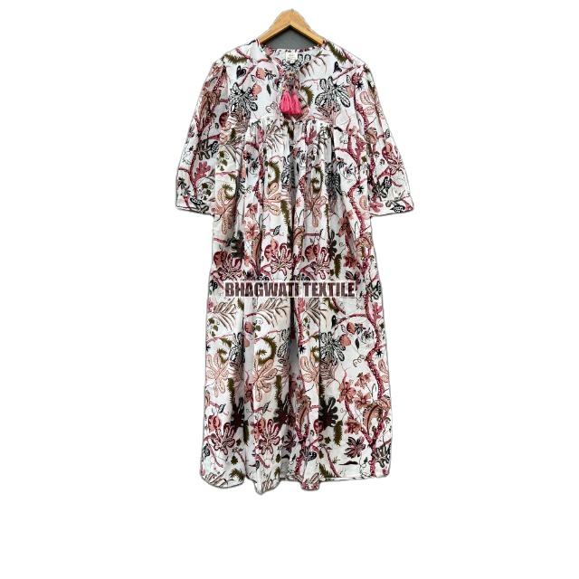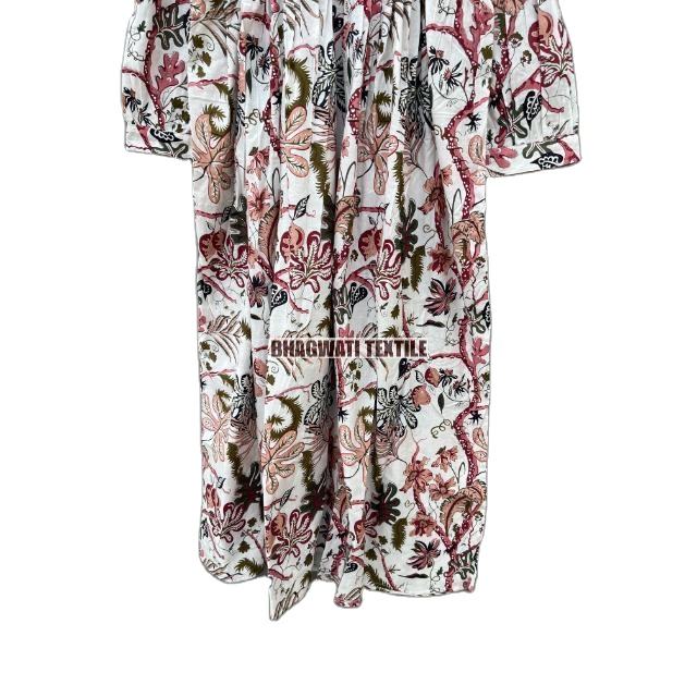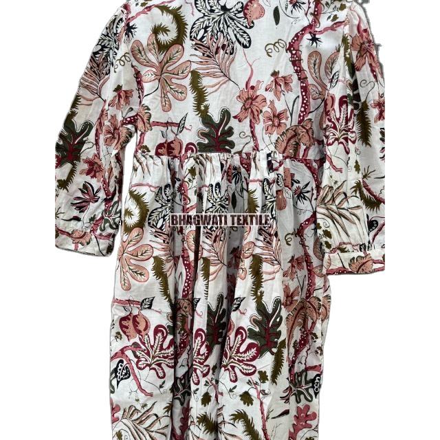เดรสผ้าฝ้ายพิมพ์ลายดอกไม้สำหรับผู้หญิงเดรสยาวแบบลำลองและฤดูร้อน100%