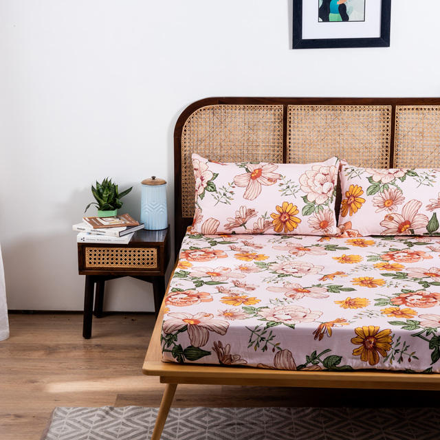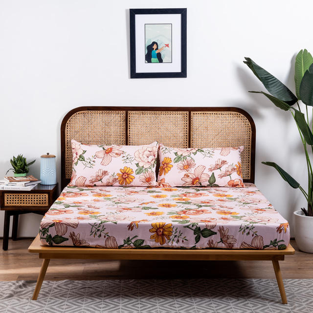 New Printed Flower Design 300tc Eco-Friendly Cotton Bedsheet Set Double Bed 2 Pillow Covers Nature Style Home Bedding Wholesale