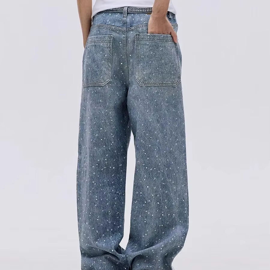 กางเกงผู้หญิงผ้าฝ้าย100% ระบายอากาศได้ดีพิมพ์ลายหินแบบมีสไตล์ใหม่กางเกงยีนส์ทรงโอเวอร์ไซส์มีสไตล์