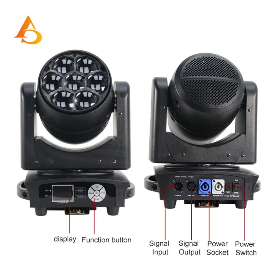ไฟหัวขยับแบบวอช LED รุ่นใหม่ 7*40w พร้อมซูมขนาดเล็ก ไฟเลเซอร์เอฟเฟค DMX
