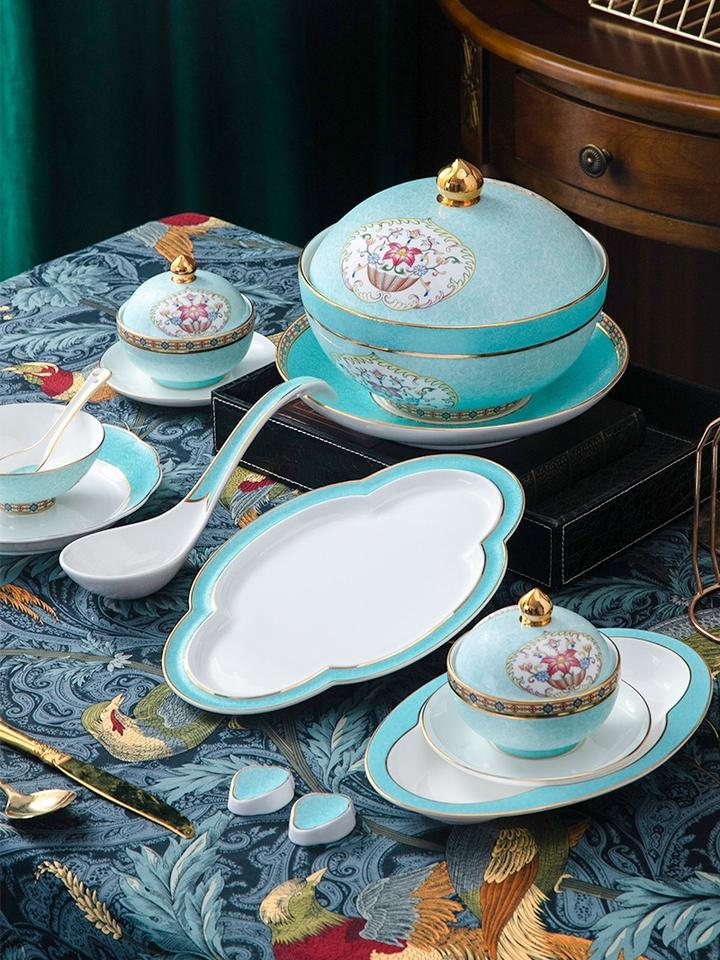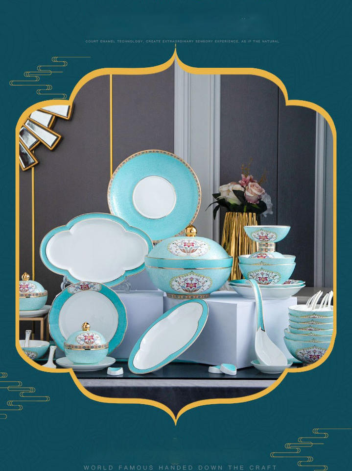 ชุดอาหารค่ำพอร์ซเลนตกแต่งบ้านสไตล์จีนโบราณสุดหรู 86 ชิ้น รุ่นใหม่