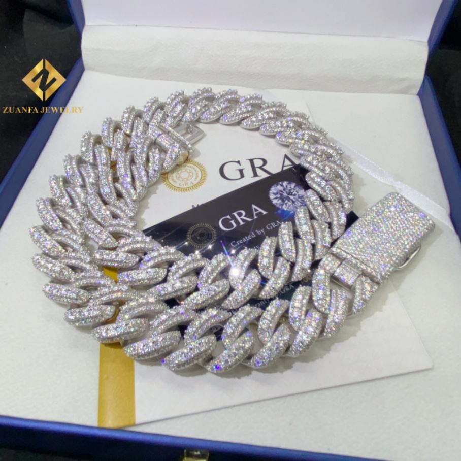 สินค้าใหม่925เงินสเตอร์ลิงโซ่คิวบา20มม. สำหรับผู้ชาย VVS Moissanite Miami cuban CHAIN HIPHOP ciced OUT Jewelry GRA