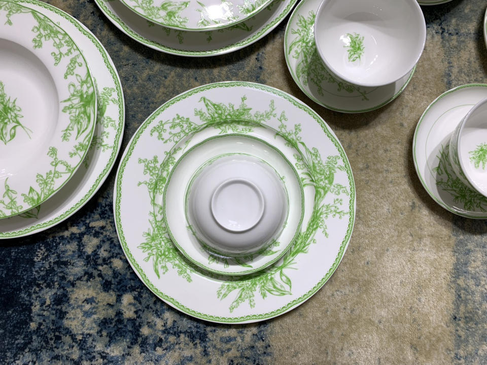 ชุดรับประทานอาหารค่ำ41ชิ้นจานลายพอร์ซเลนสีเขียวจานจีนลายกระดูกหรูหราสไตล์ยุโรป