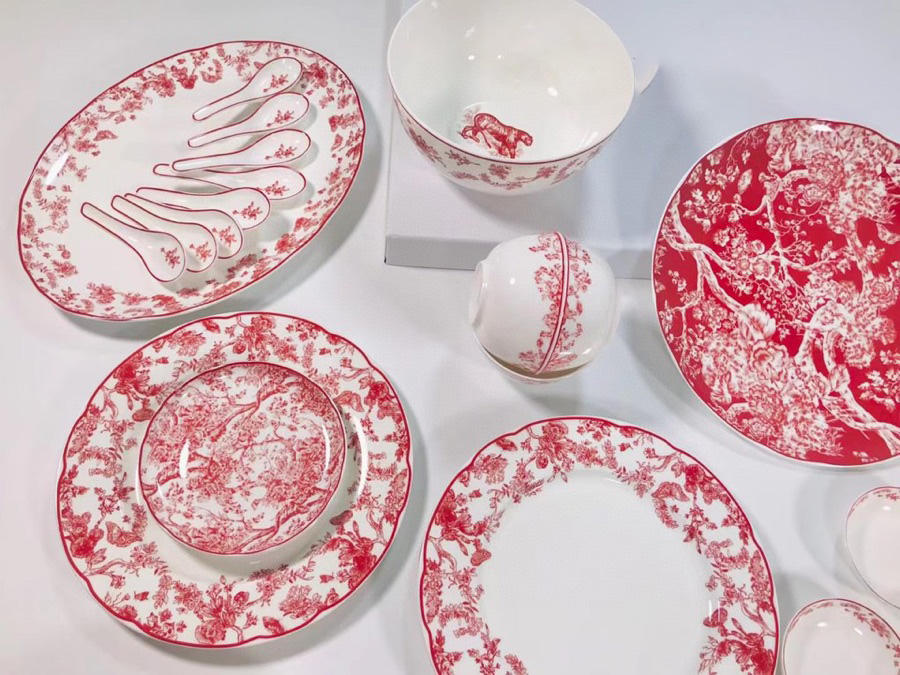ชุดอาหารค่ำสไตล์ยุโรป41ชิ้นสีแดงหรูหรา
