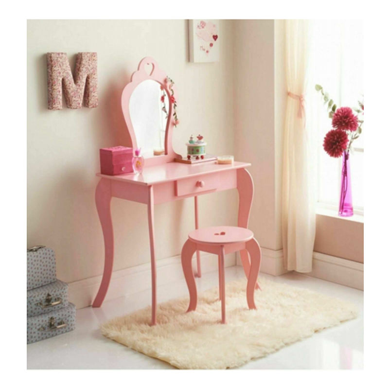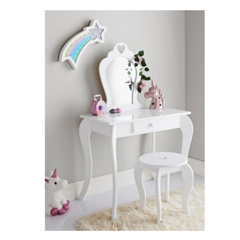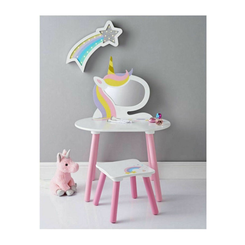 โต๊ะเครื่องแป้งไม้ลายการ์ตูน,สินค้าใหม่ชุดโต๊ะเครื่องแป้งลายการ์ตูนสีขาวสีชมพูเฟอร์นิเจอร์เด็กลายยูนิคอร์น
