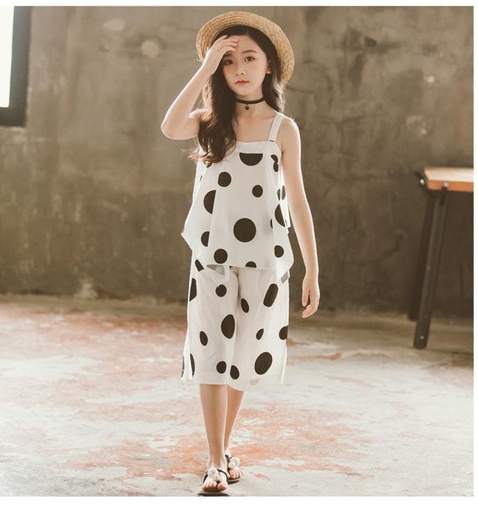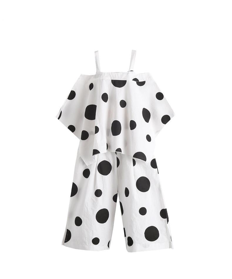 ไอเดียสินค้าใหม่ ชุดเสื้อผ้าเด็กผู้หญิงลายจุดผ้าชีฟองคอตตอนสีขาวหวานสไตล์บูติกสำหรับฤดูร้อน