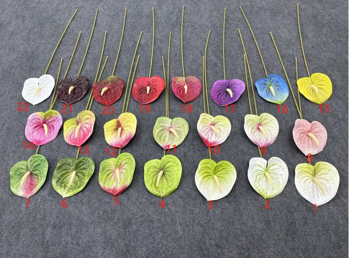 ไอเดียสินค้าใหม่ ต้นไม้ประดิษฐ์ ยางพาราสัมผัสเหมือนจริง ดอกอันธูเรียม กิ่งเดี่ยว ดอกไม้ประดิษฐ์จำนวนมาก สำหรับตกแต่งงานแต่งงานและบ้าน