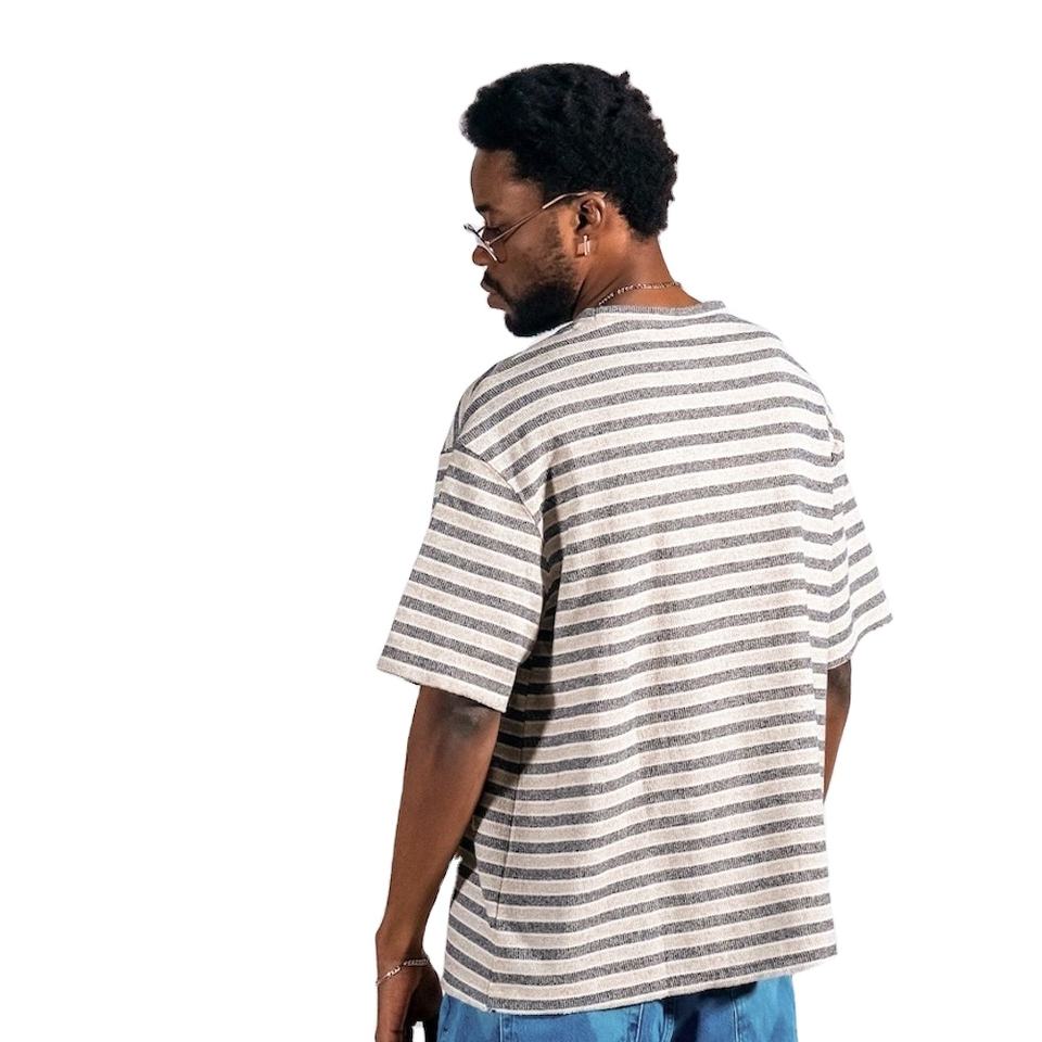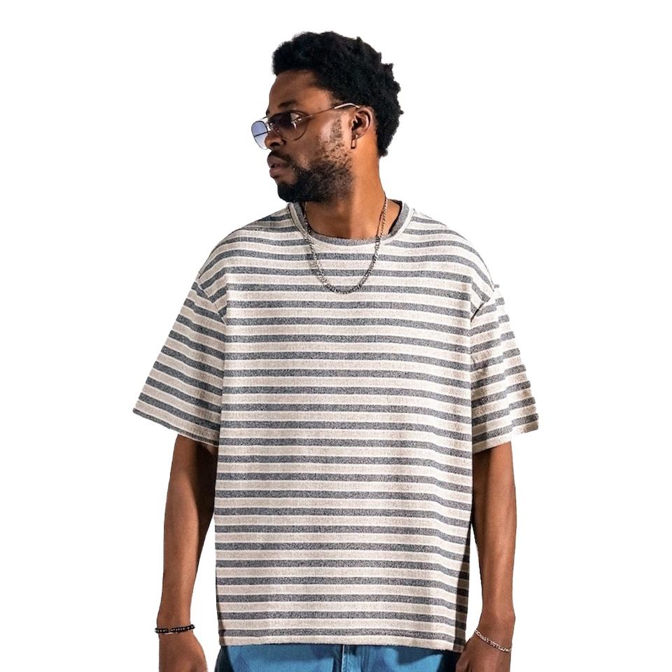 เสื้อยืดผู้ชายไซส์ใหญ่ คอกลม แบบสั่งทำพิเศษ OEM ผ้าฝ้าย 100% ซับในลายทาง เสื้อยืดโอเวอร์ไซส์สำหรับผู้ชาย