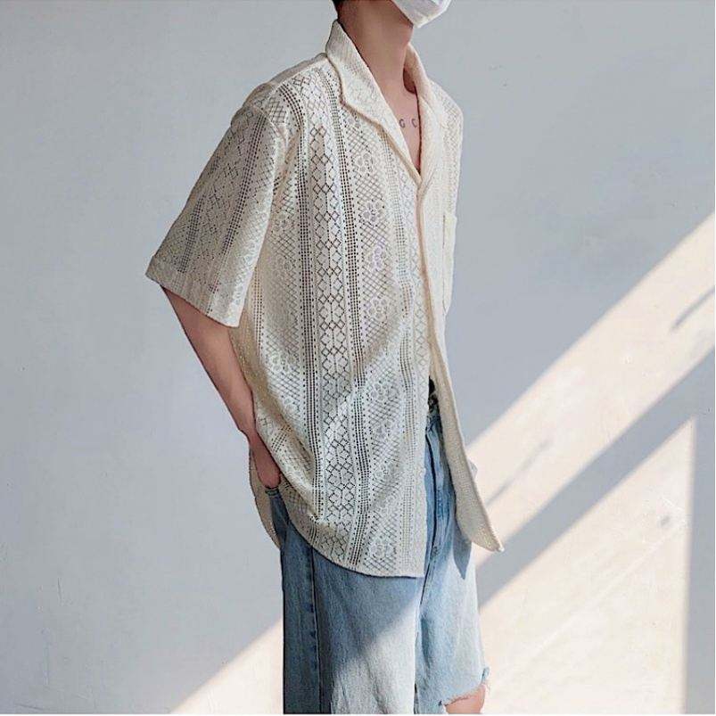 New Product Mens Wholesale OEM Factory Custom 100% Cotton Knitted Lace Crochet Shirts