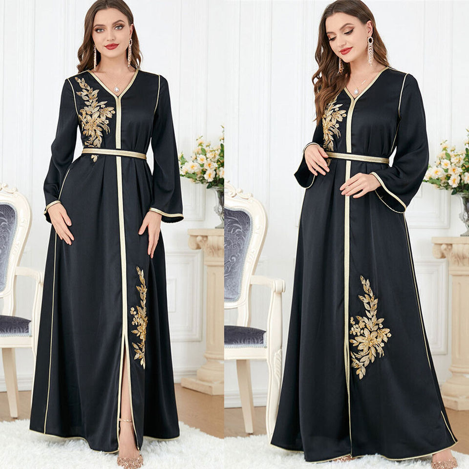 ผ้าไหมอาบายาปักลายลูกไม้สีทองสำหรับหน้าอก,ผลิตภัณฑ์ใหม่มุสลิมสุภาพสตรีเย็บยาวคมชัดด้วยฉลากส่วนตัว