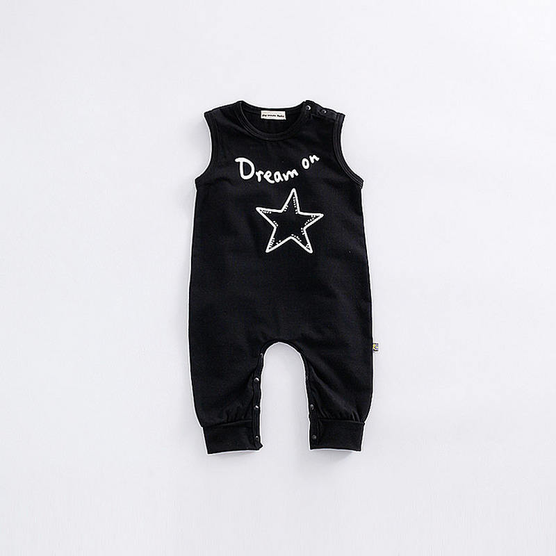 คำอธิบาย:ชุดรอมเปอร์เด็กแขนกุดสีทึบ