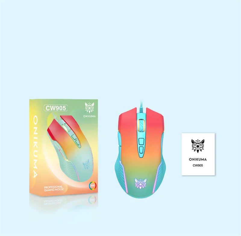 Onikuma เม้าส์สำหรับเด็กผู้หญิงแบบมีสาย CW905แบบมีกลไกใช้คอมพิวเตอร์ไฟ RGB กระโจม6สปีด6400 dpi
