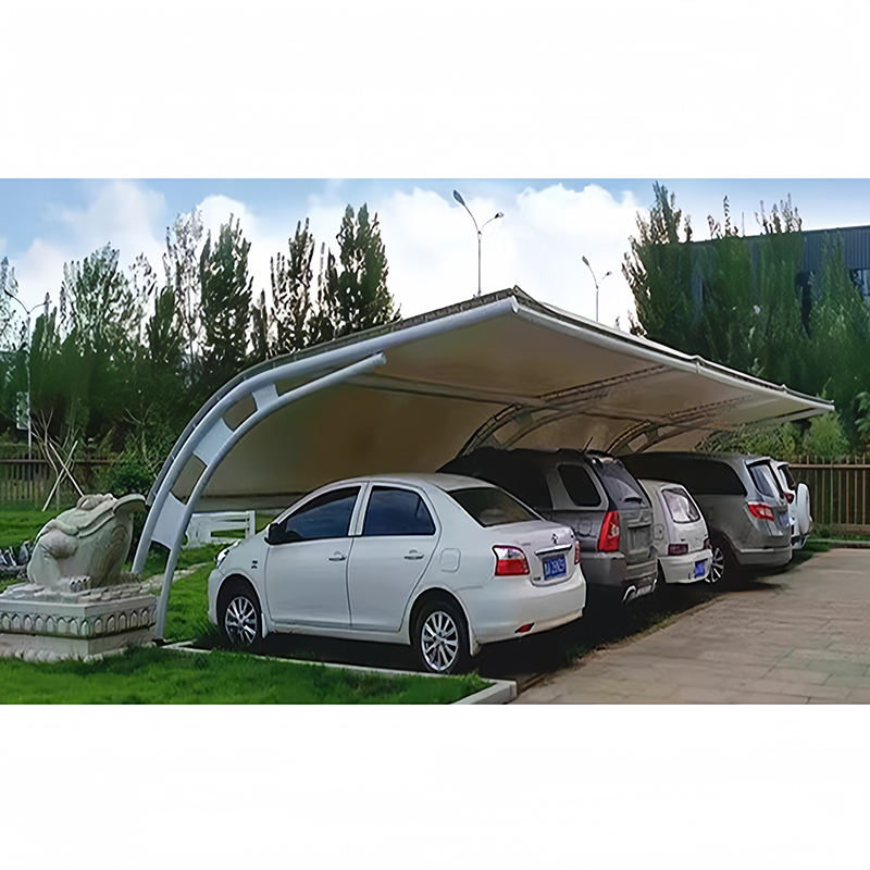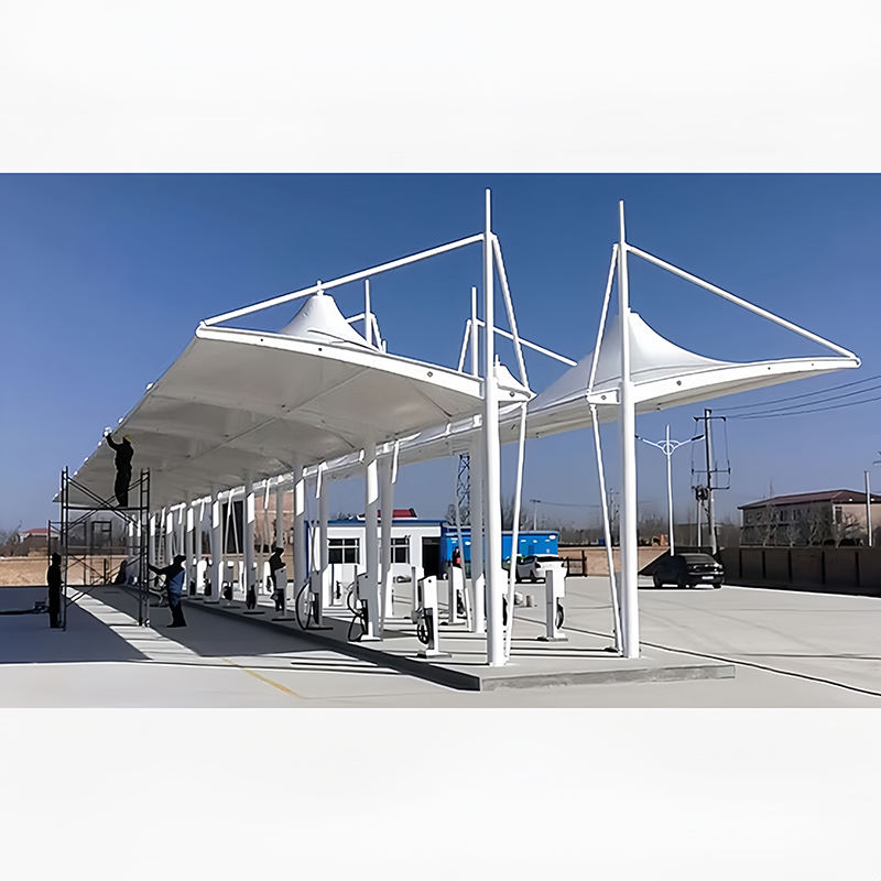 โครงสร้างหลังคาโรงจอดรถแบบเมมเบรน PVDF รุ่นใหม่ โครงสร้างเหล็กแบบทรัส ดีไซน์หลังคาโรงจอดรถ
