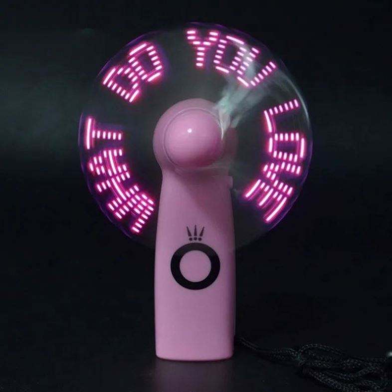 พัดลมมือถือแบบพกพา รุ่นใหม่ พร้อมจอแสดงผล LED โฮโลแกรมขนาดเล็ก สามารถตั้งโปรแกรมข้อความได้