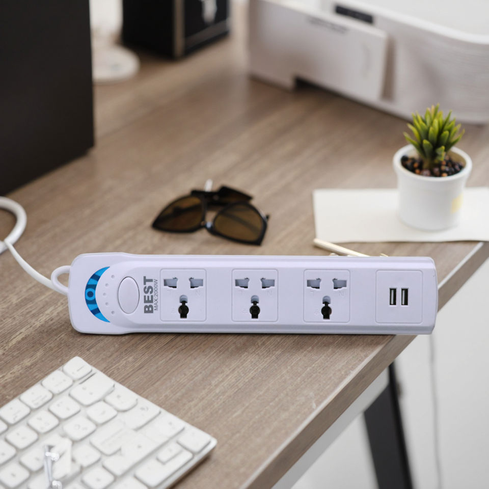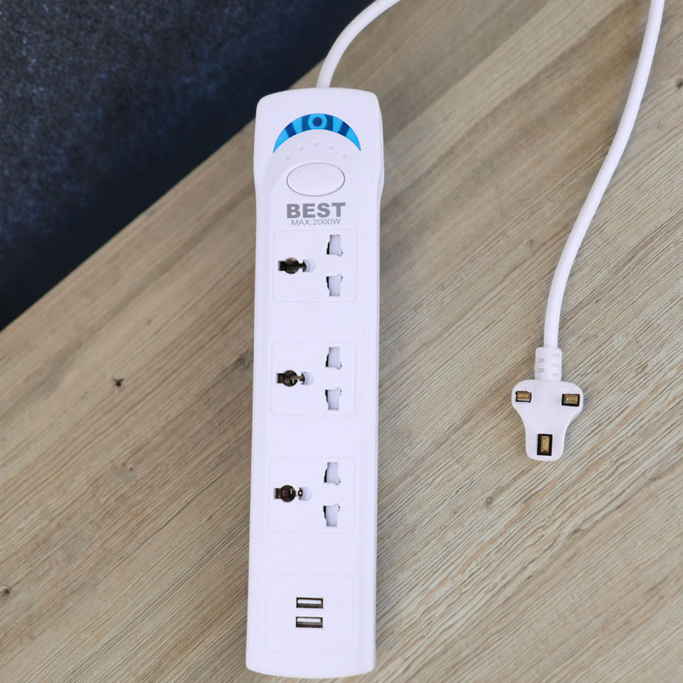 ปลั๊กพ่วงอัจฉริยะสำหรับบ้าน รุ่นใหม่ ยาว 3 เมตร ป้องกันไฟกระชาก พร้อมเต้ารับไฟฟ้า 3 ช่อง และพอร์ต USB