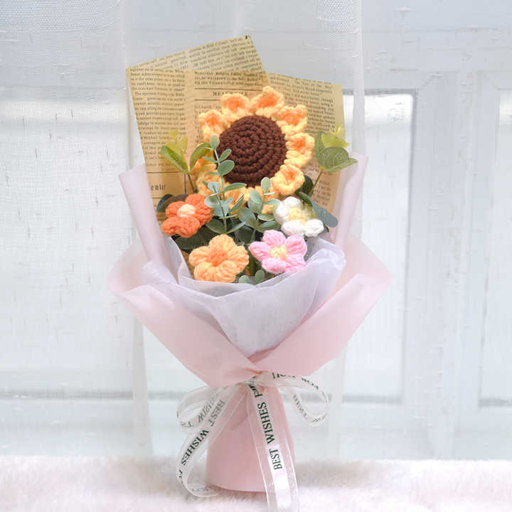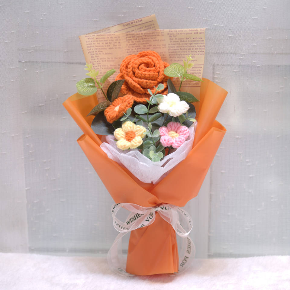 ดอกไม้ถักมือลายดอกกุหลาบเทียมสำหรับตกแต่งบ้าน