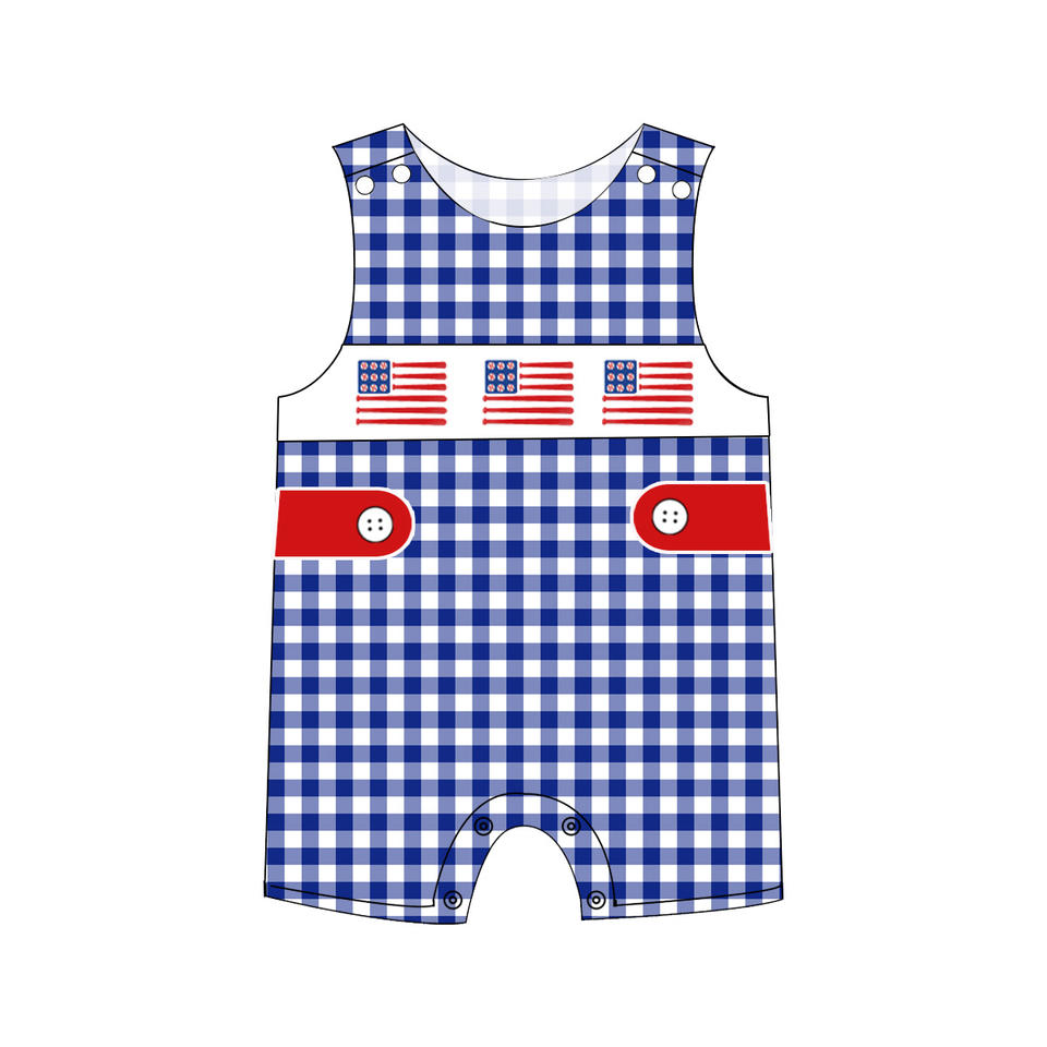 ชุดบอดี้สูทเด็กผู้หญิงลายตารางน่ารักสำหรับฤดูร้อน แบบใหม่ รับผลิตตามสั่ง (OEM) ปักลายวันชาติอเมริกา 4 กรกฎาคม ชุดรอมเปอร์เด็กแรกเกิด