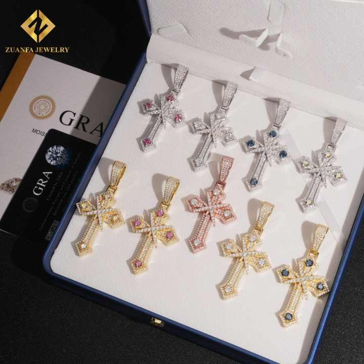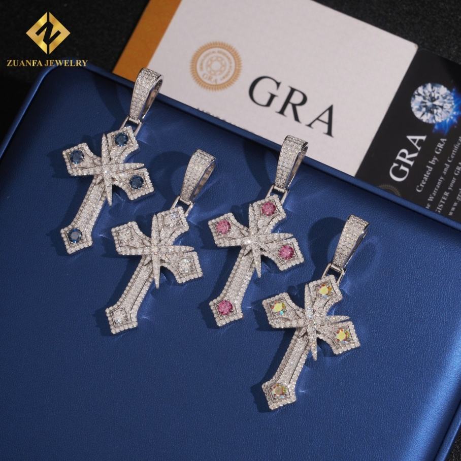 New Products Cross Pendant Necklace HipHop Style Ice Out VVS Moissanite Pendant 925 Sterling Silver Pass Diamond Tester Jewelry