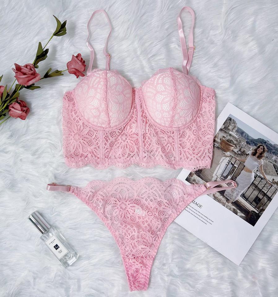 ชุดบรากางเกงในเซ็กซี่สำหรับผู้หญิงชุดลูกไม้ประดับลายดอกไม้ประดับคอวีลึกสินค้าใหม่
