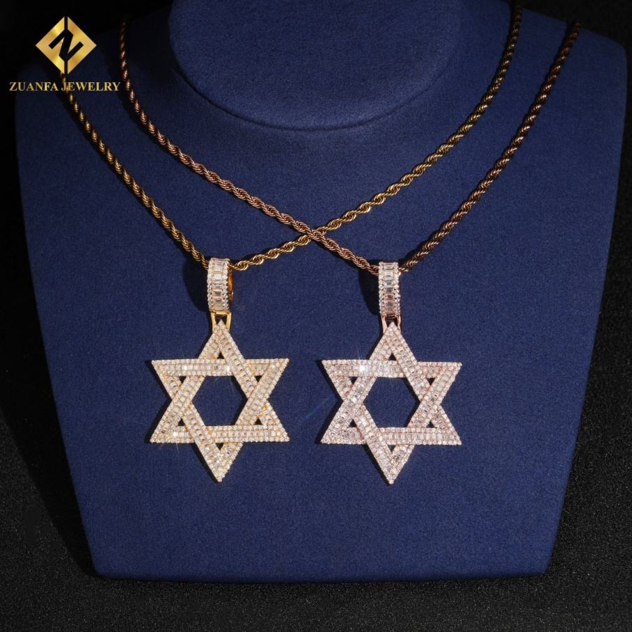 สินค้าใหม่จี้เงินสเตอลิง925จี้เพชรรูปดวงจันทร์ VVS จี้หกเหลี่ยมเครื่องทดสอบเครื่องประดับสไตล์ฮิปฮอป