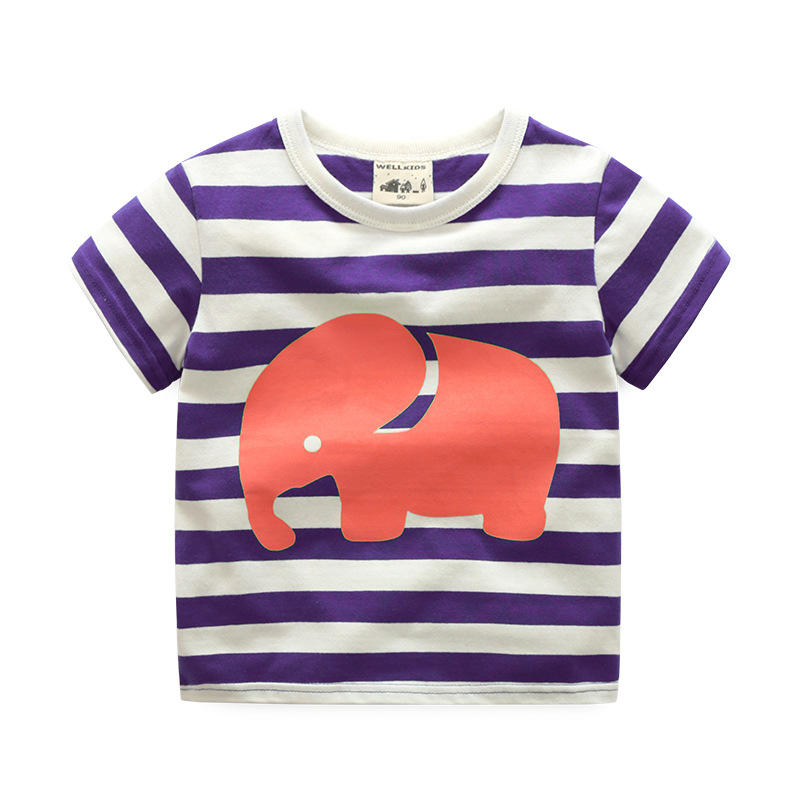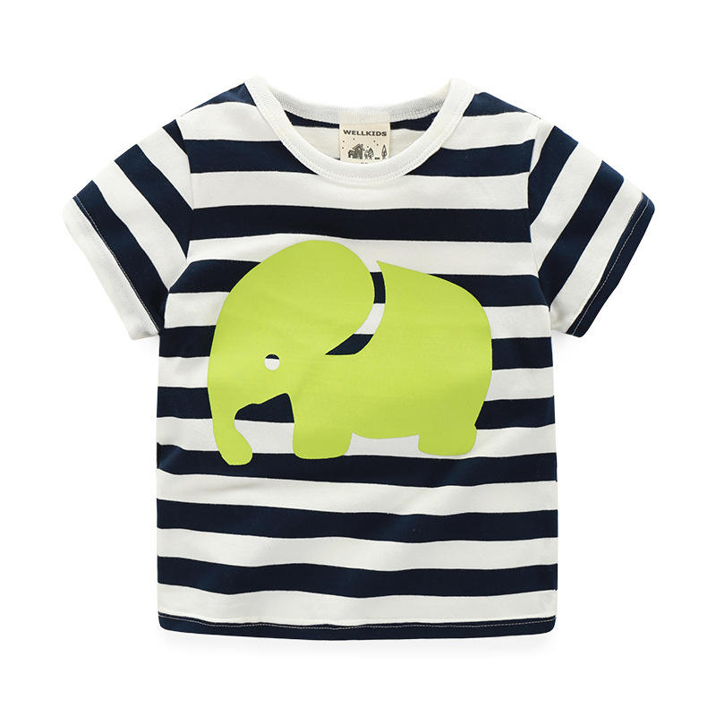 เสื้อยืดเด็กผู้ชายลายทางสไตล์เกาหลีสำหรับฤดูร้อน
