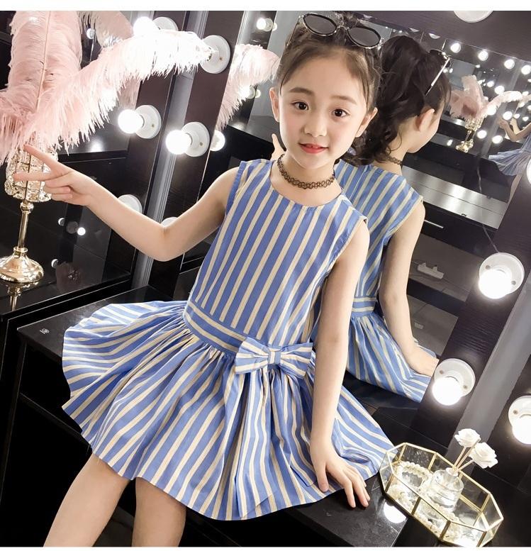 สินค้าใหม่ ชุดเดรสเด็กผู้หญิงสไตล์พรีปปี้ ลายทาง เปิดไหล่ แต่งโบว์เจ้าหญิง ผ้าฝ้าย ระบายอากาศดี สำหรับฤดูร้อน จากประเทศจีน