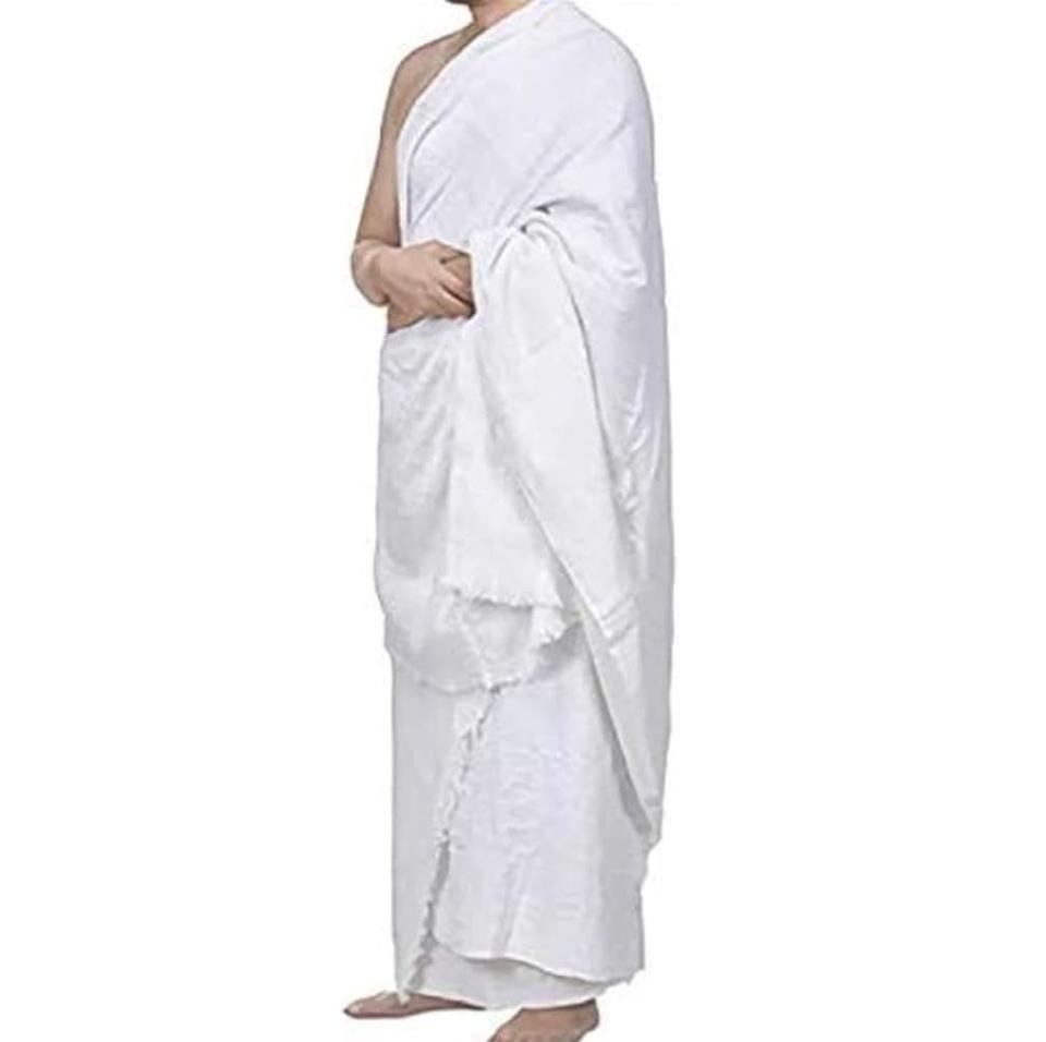 ผ้าอิห์รอมสำหรับฮัจญ์และอุมเราะห์ ผ้าฝ้ายแท้ 100% สำหรับผู้ชายมุสลิม ผ้าขนหนูสองชิ้น พร้อมโลโก้สั่งทำ ระบายอากาศได้ดี