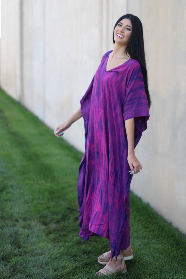 Kaftan เดรสมัดย้อมแบบโบฮีเมียน,ใหม่เดรสมัดย้อมเดรสยาวสีม่วงแบบฮิปปี้โบฮีเมียนสำหรับผู้หญิงเดรสสำหรับฤดูร้อน