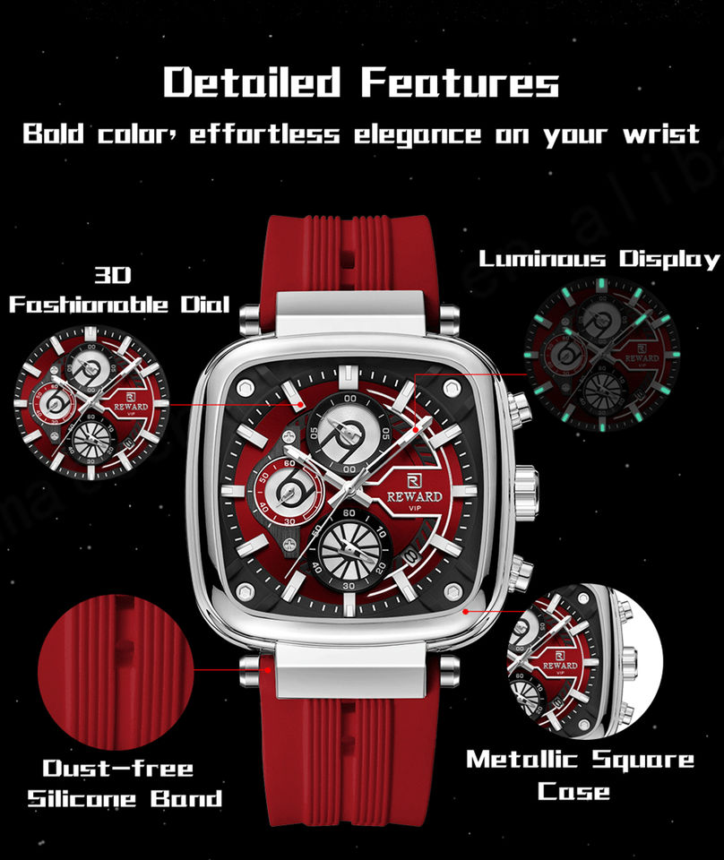 โครโนกราฟ, ปฏิทินที่สมบูรณ์, วัน / วัน, ข้างแรม, กันน้ำ, กันน้ำ, เรืองแสง, สัปดาห์แสดง, มือส่องสว่าง, หยุดนาฬิกา