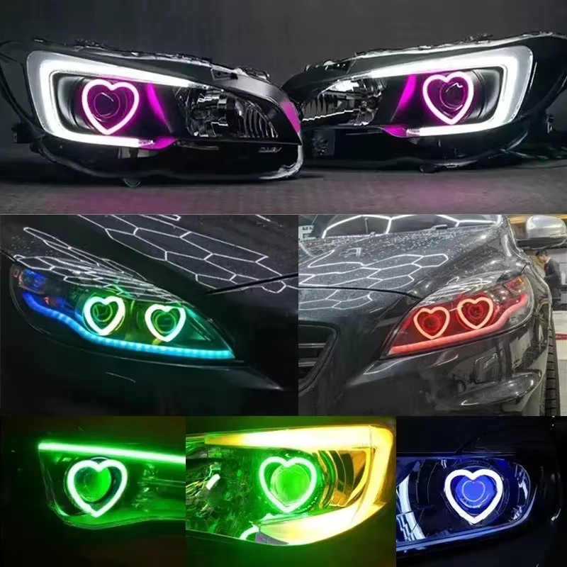 ไฟวงแหวน LED RGB รูปหัวใจ สำหรับตกแต่งรถยนต์ พร้อมไฟเลี้ยวแบบ Sequential ควบคุมผ่านแอพพลิเคชั่นบนมือถือ