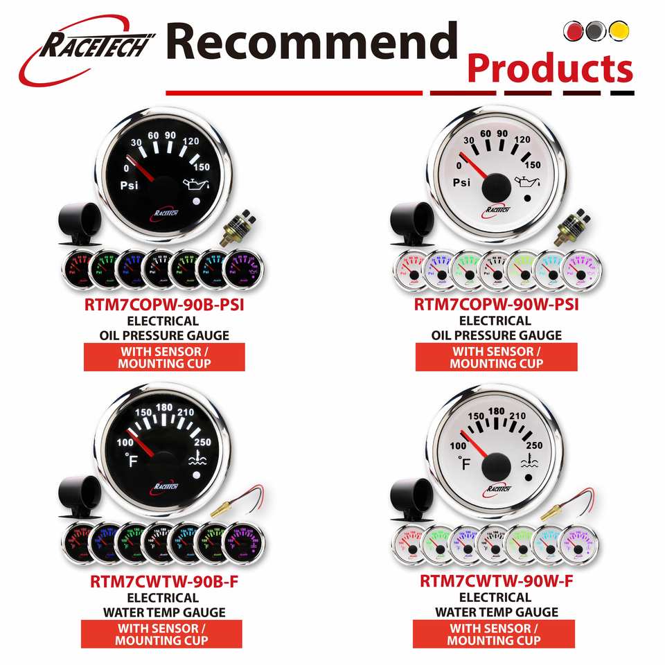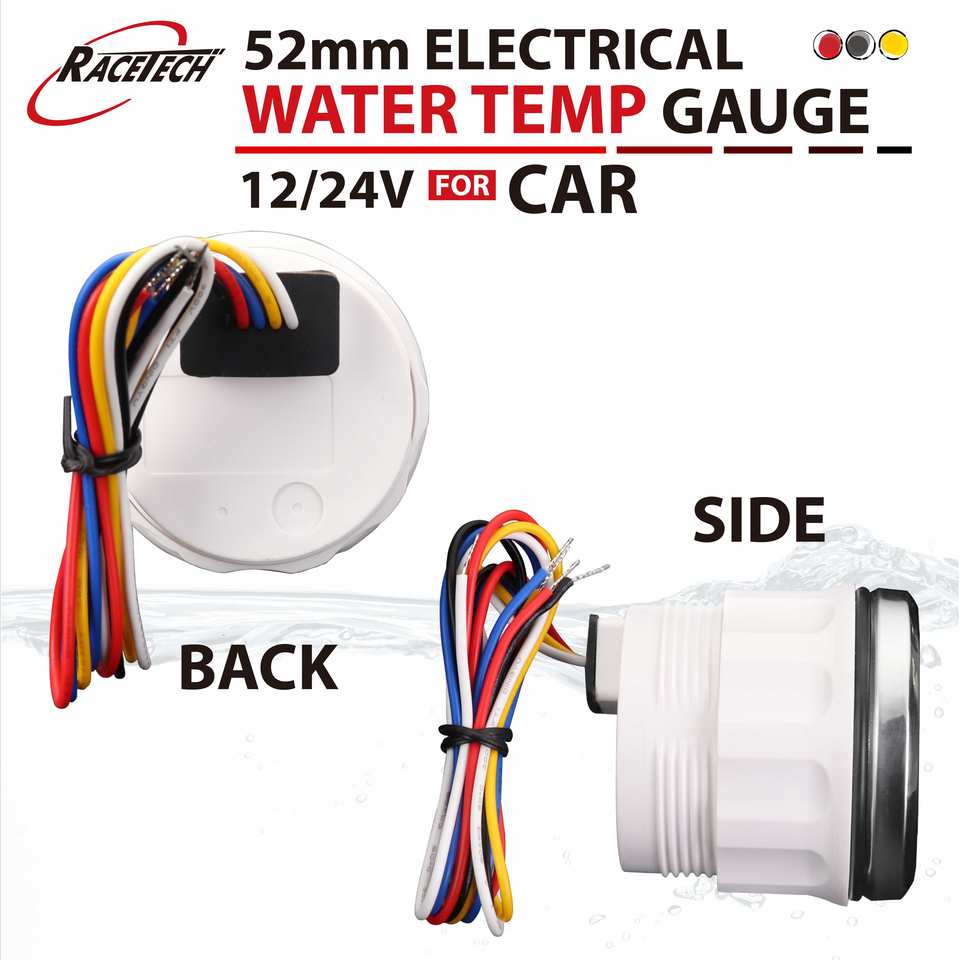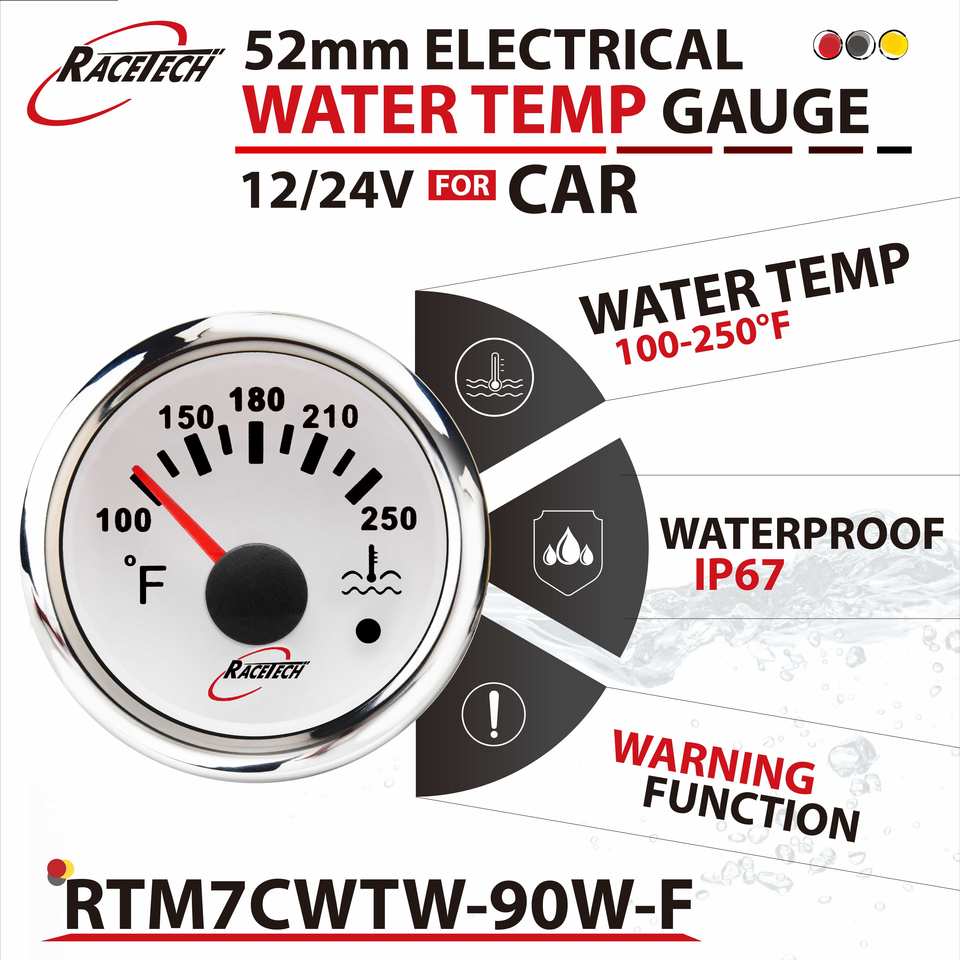 Racetech มาตรวัดอุณหภูมิน้ำไฟฟ้า7สี52มม. ใหม่100-250F สีขาวกันน้ำได้ฟังก์ชั่นเตือน IP67รถยนต์12-24V