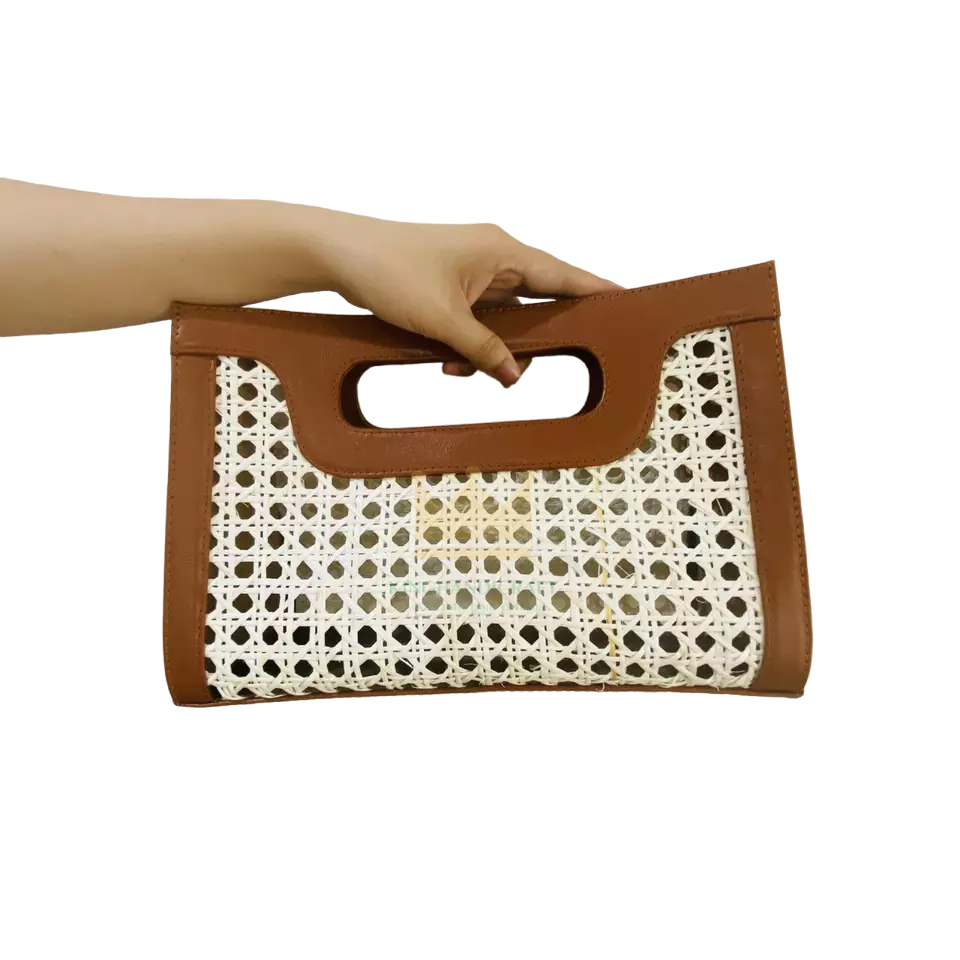 กระเป๋าหวายใหม่พร้อมหนังแท้/กระเป๋าหวายสานแบบวินเทจ/กระเป๋าหวายบาหลี