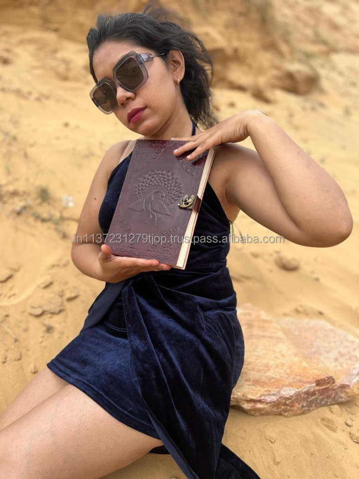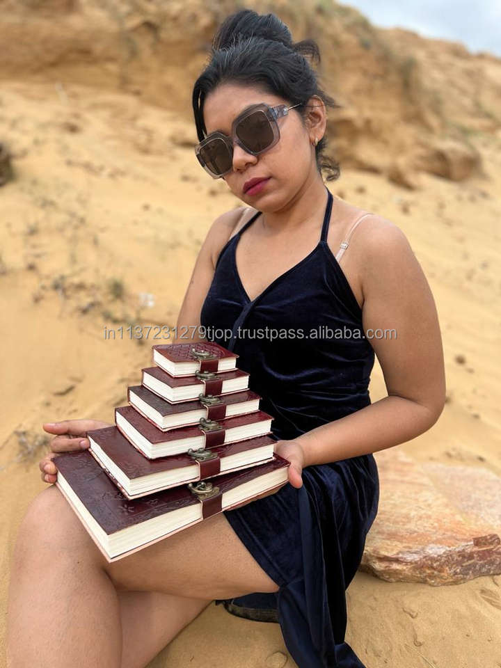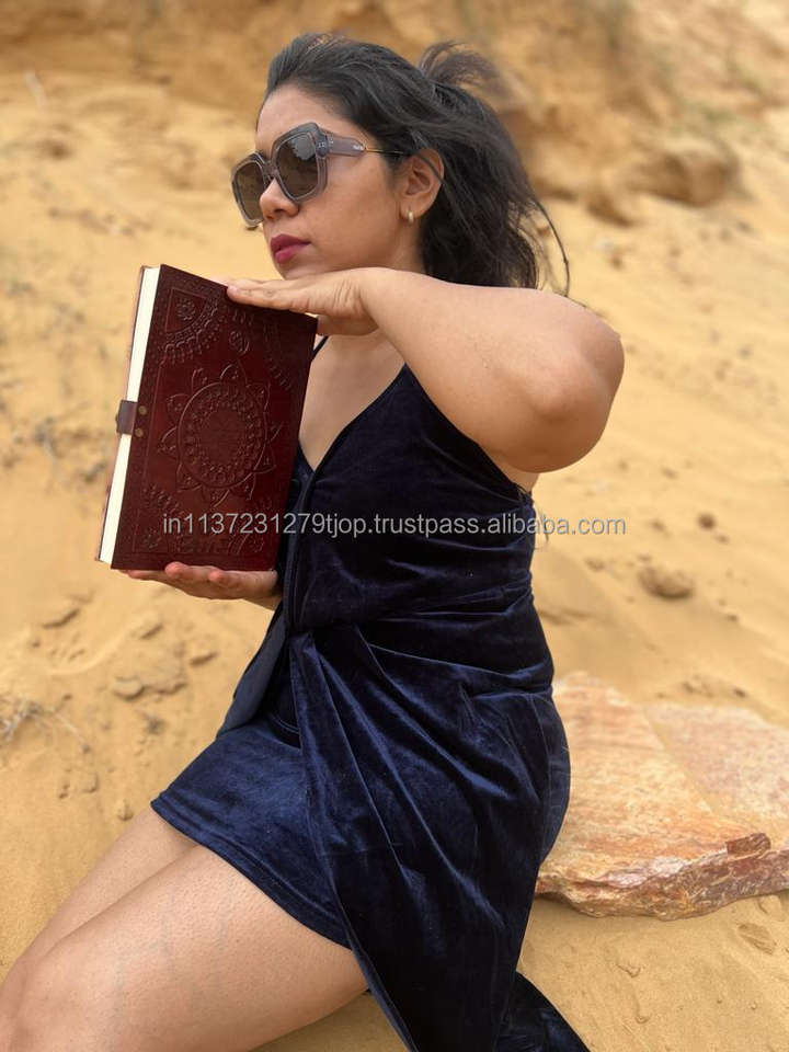 สมุดบันทึกการเดินทางแบบวินเทจแบบดั้งเดิมหนังแท้แบบมีเข็มล็อคหนังสีบรอนซ์สลักลายนูนแบบใหม่