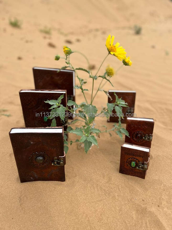 สมุดบันทึกการเดินทางแบบมีกระดุมหนังแท้ใหม่พร้อมหินมีค่าแบบวินเทจแบบดั้งเดิมสไตล์โบโฮ