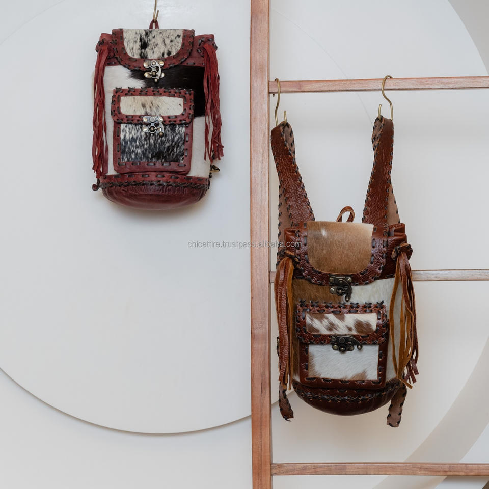 Handmade Cowhide Fur Leather Backpack