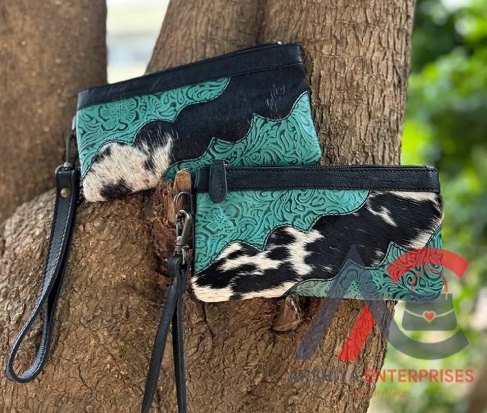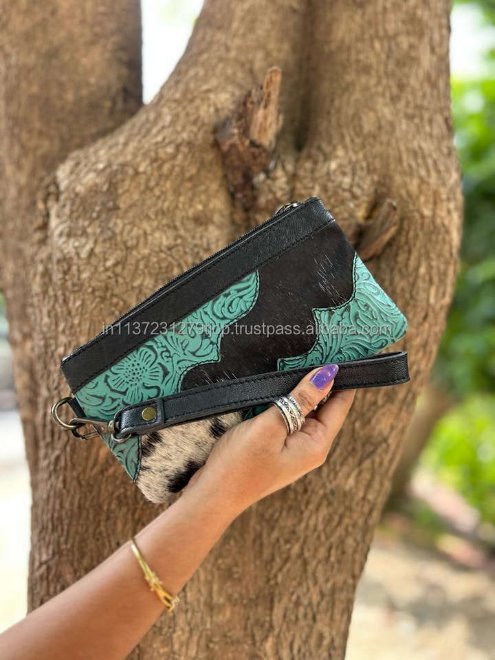 คุณสมบัติ:Embossed Color Print, Wristlet, Cowhide Fur